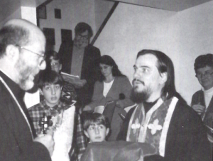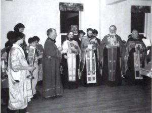 The highlight of 1996, of course, was a visit from our most beloved Bishop Joseph. The first Monday of Lent that year we celebrated the Canon of St. Andrew with Bishop Joseph. He first graced us with his presence at a Parish Council dinner in one of our homes. He lovingly shepherded us with his pastoral concerns and counsel. We were so blessed. Many came from Spokane to meet our beloved Shepherd and the combined choirs sang. We knew with his blessing and prayers we would truly be on our way.