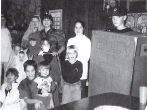 Also, that first Spring Fr. Gregory arranged for us to participate in a baseball competition against other churches in the area. We literally threw a team together in a matter of days bringing our icon of St. John the Baptist as part of our evangelical outreach. We lost the competition, but we gained recognition in the community. Fr. Gregory had his debut as theologian on TV, and now was seen in a different light—as our star baseball player. Who said priests are stuffy and can’t have fun! We were seen as a family. Our father and our mother (Khoureya Cindy) both played ball joined by many of these spiritual children, while still others served as part of the cheerleading squad on the sidelines.